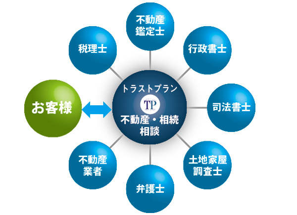 トラストプランでは無料でお客様の相続に関するお悩み・問題をお聞きし、最適な各種専門家をコーディネイトすることで時間・費用の負担を軽減することが可能です。お気軽にご相談下さい。